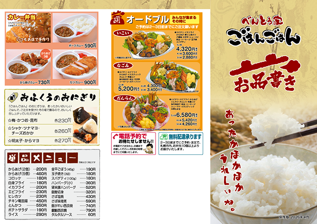 2026.04.01 メニューの価格改定をしました。
